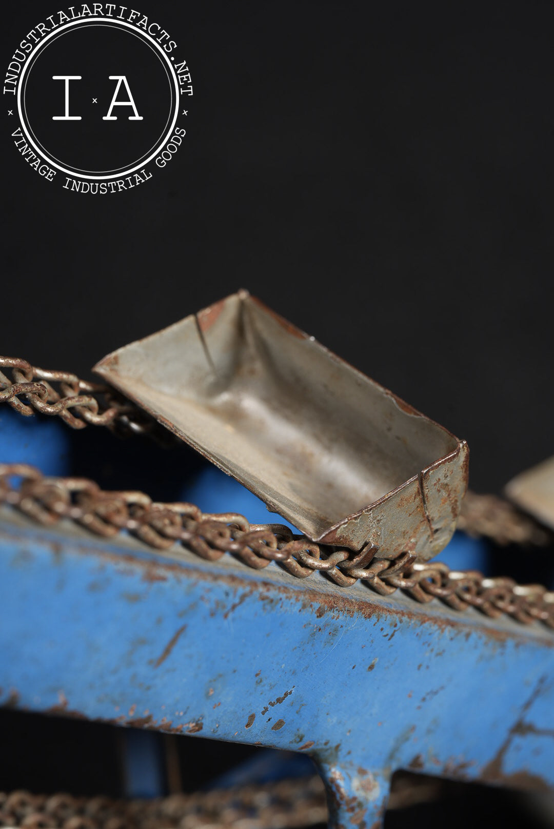 Wear consistent with age, including paint loss, surface oxidation, and patina. Chain and scoops intact, movement untested but appears mechanically sound.
